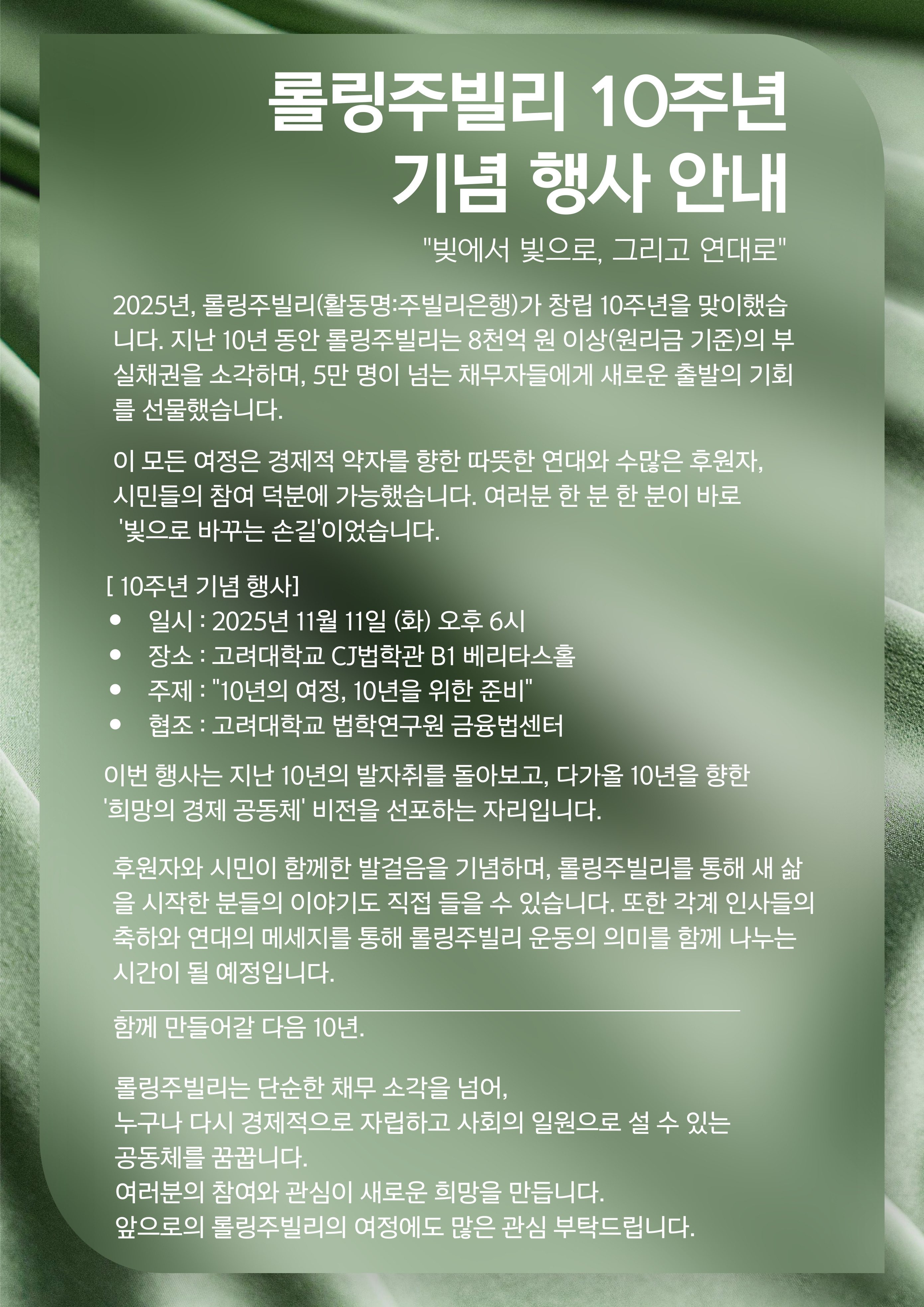 2025년 롤링주빌리 10주년 후원의 밤