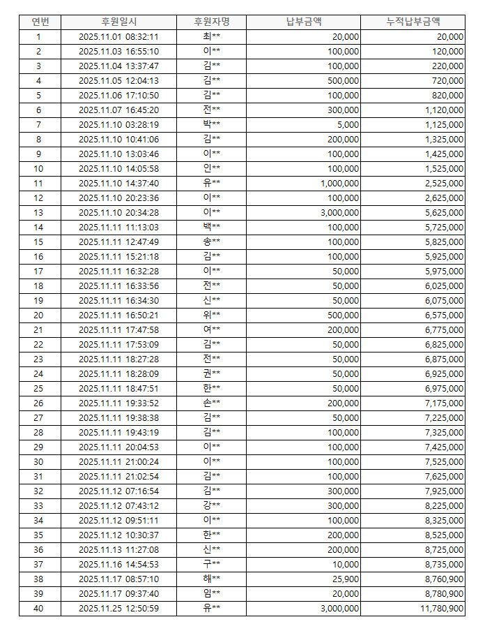 2025년 11월 후원내역